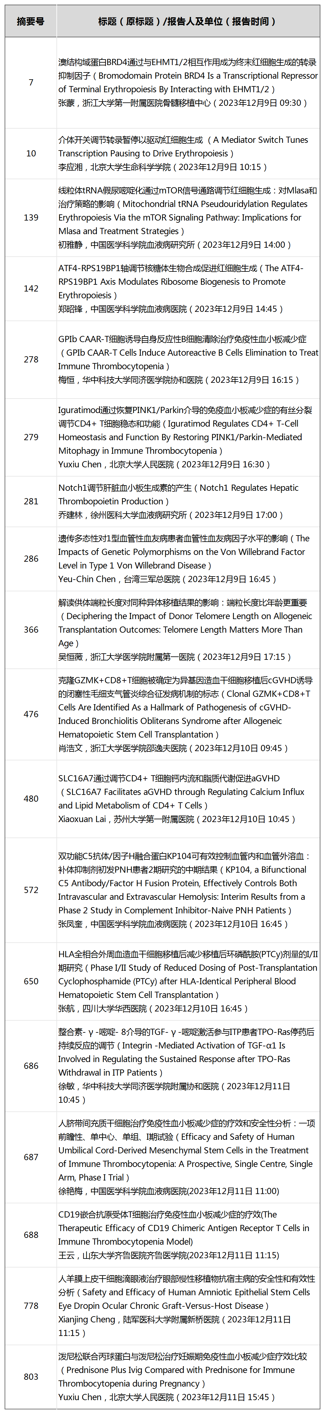 2023 ASH大会摘要公布!60+篇中国研究入选口头报告,一文速览!