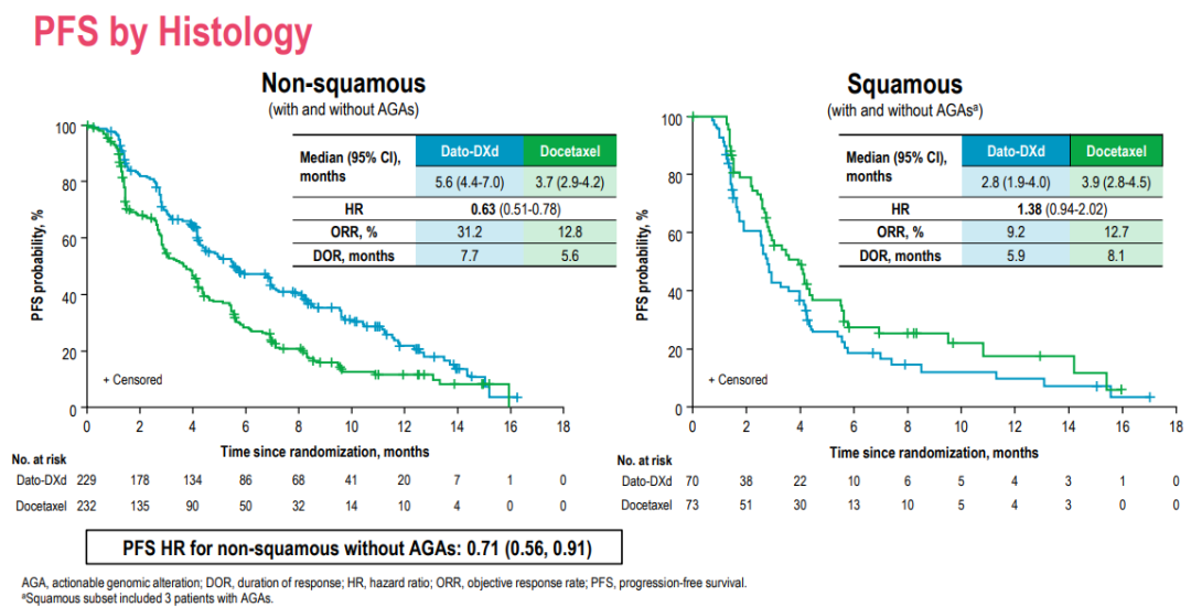 TROPION-Lung01研究:不同组织学类型NSCLC患者的PFS