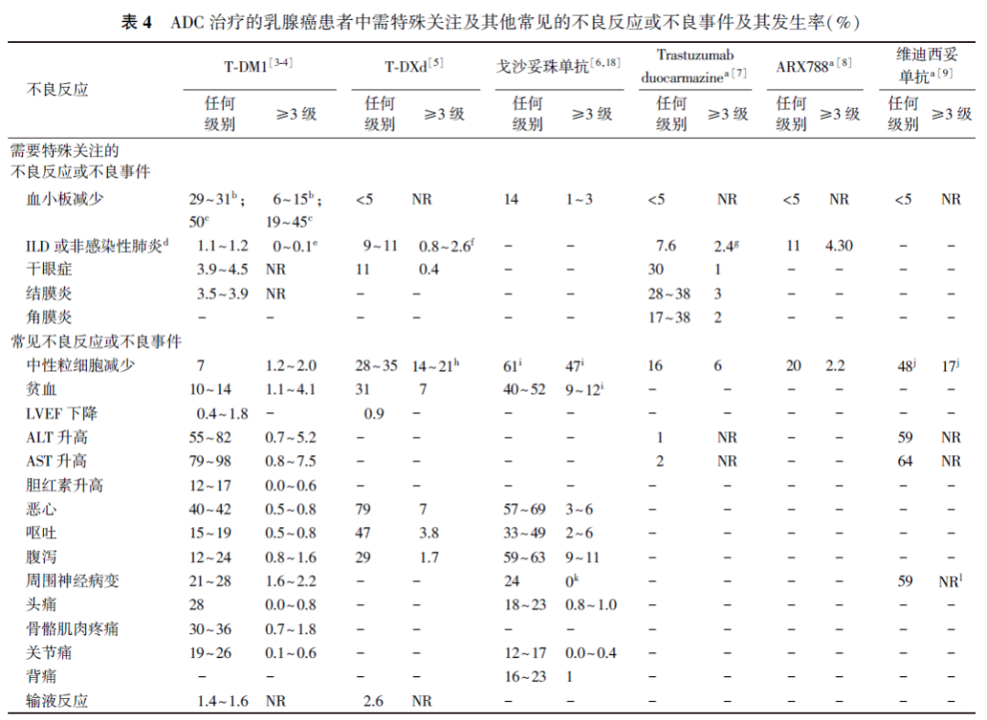 乳腺癌已获批ADC药物的不良反应谱[2]