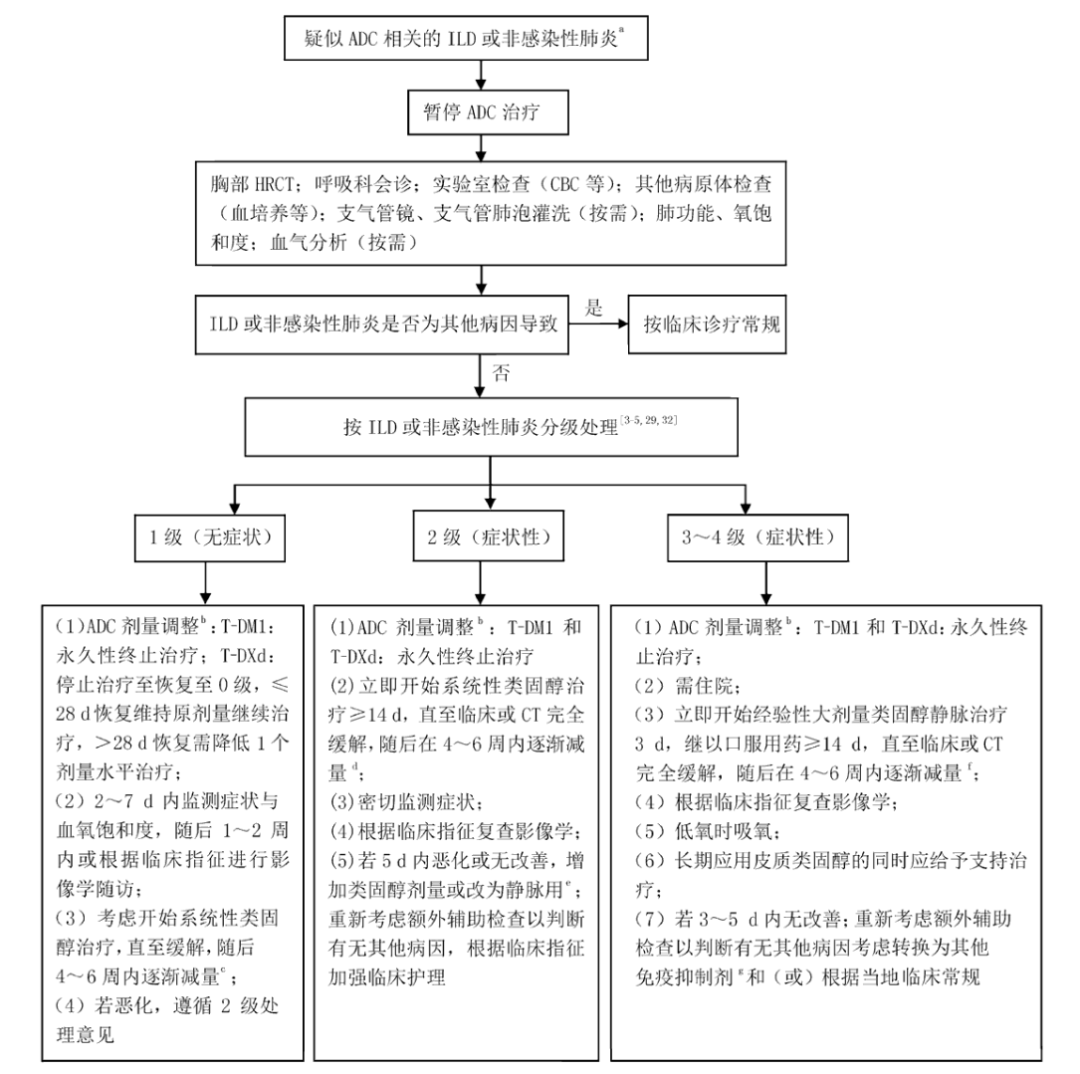 《中国乳腺癌抗体药物偶联物安全性管理专家共识》ADC治疗相关ILD或非感染性肺炎的常规对症处理流程[2]