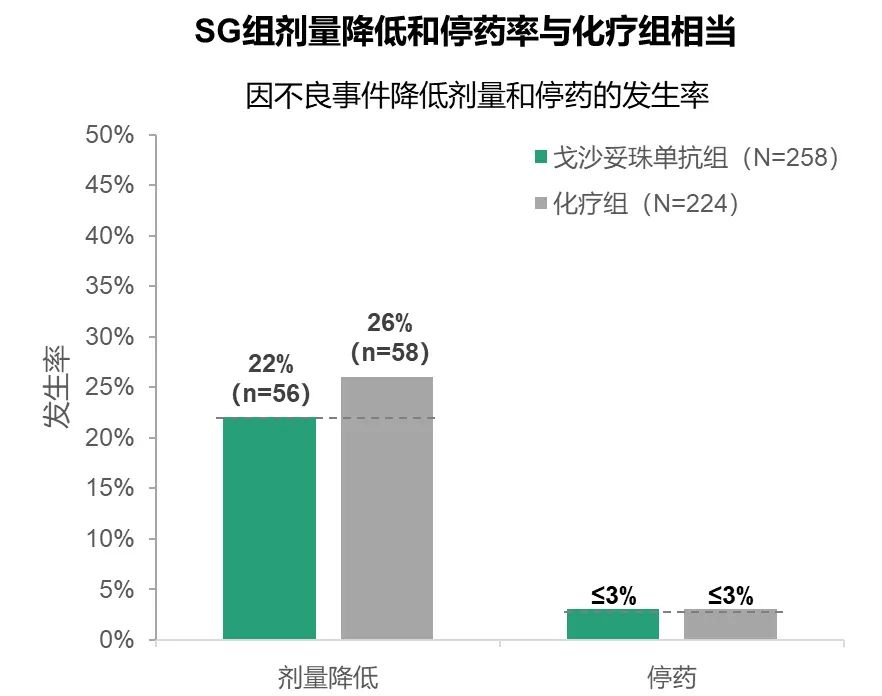 ASCENT研究中SG组与化疗组的减量与停药发生率