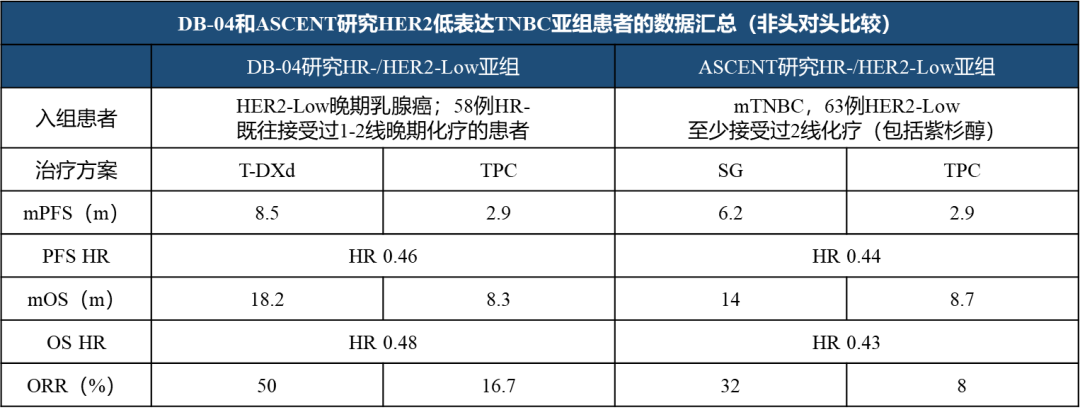 表2 HR-/HER2-Low(HER2低表达TNBC)的数据汇总