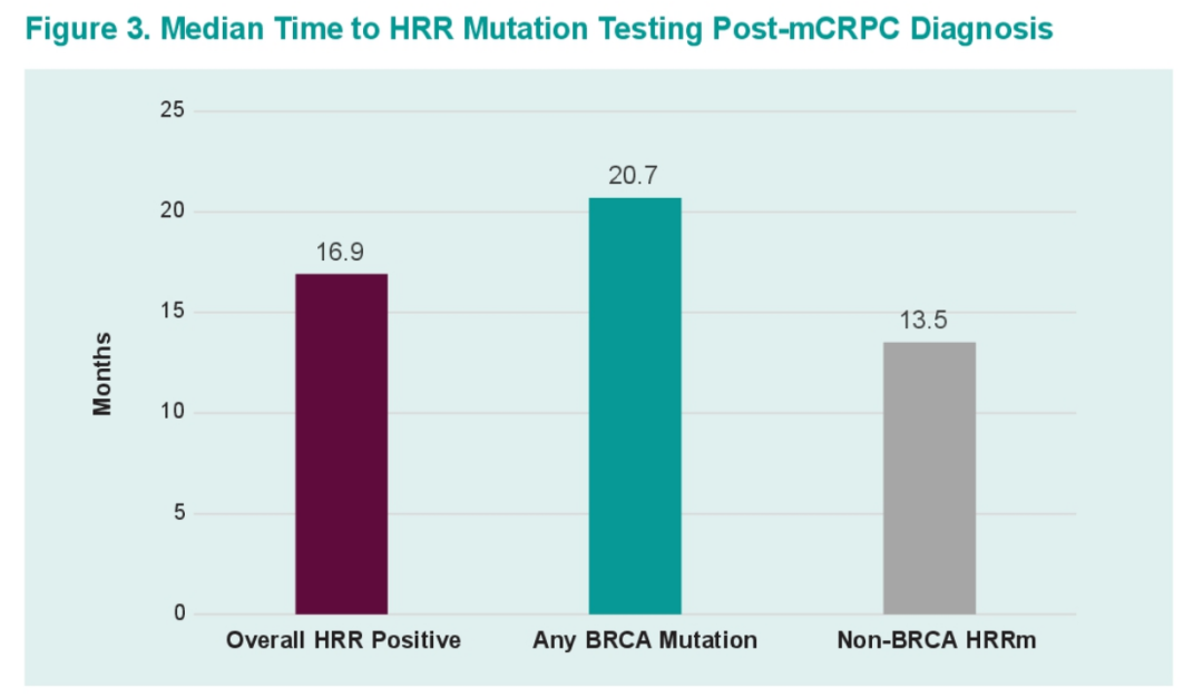 △美国真实世界研究(ASCO-GU 2024,摘要号:332):总体人群的至mCRPC诊断后HRRm检测阳性时间长达16.9个月