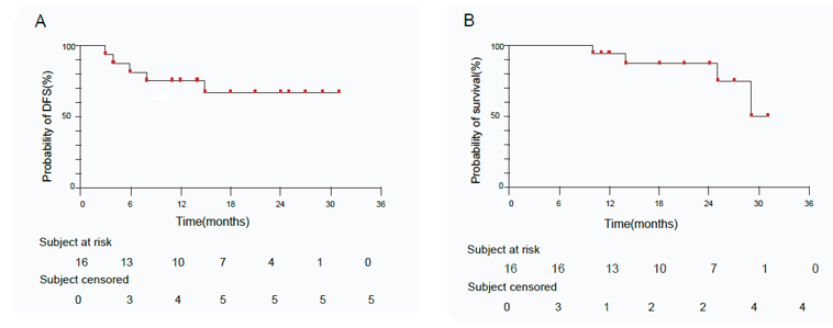 研究中位随访时间25个月(10-31),术前影像学评估时,6名患者达到cPR(37.5%),7名患者达到cSD(43.8%),3名患者为cPD(18.7)。