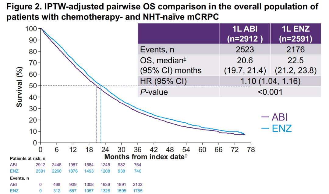 [12]George DJ,et al.Real-world(RW)overall survival(OS)with enzalutamide(ENZ)and abiraterone acetate(ABI)in patients(pts)with chemotherapy(cx)-naïve metastatic castration-resistant prostate cancer(mCRPC).ESMO 2023;abstract 1827P.