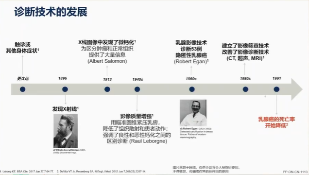 最初,乳腺癌依靠医生触诊或者患者其他身体症状进行诊断,随着X线、CT、超声、核磁(MRI)等影像技术的出现,乳腺癌的死亡率开始降低。