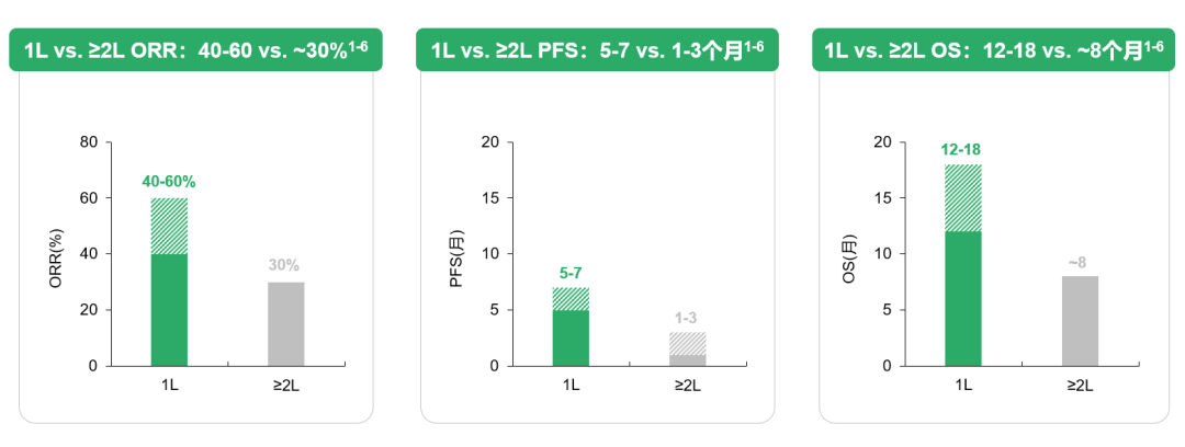 传统化疗是晚期TNBC的治疗基石之一,《NCCN指南2023v4》推荐首选序贯单药化疗,对于内脏危象患者,则推荐联合化疗[6]。一线化疗客观缓解率(ORR)约为40-60%、无进展生存期(PFS)约为5-7个月;总生存期(OS)约为12-18个月;但二线及其后治疗效果不尽人意,PFS仅1-3个月,OS仅约8个月。