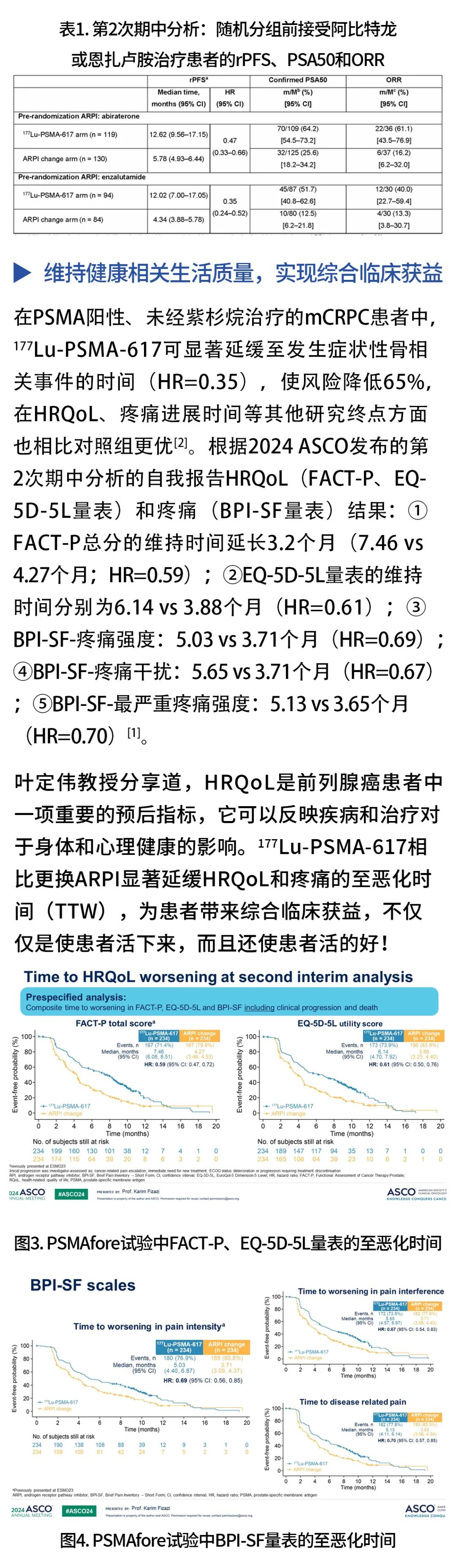 1.Fizazi K,et al.Health-related quality of life and pain in a phase 3 study of[177Lu]Lu-PSMA-617 in taxane-naive patients with metastatic castration-resistant prostate cancer(PSMAfore).2024 ASCO,abstract 5003.