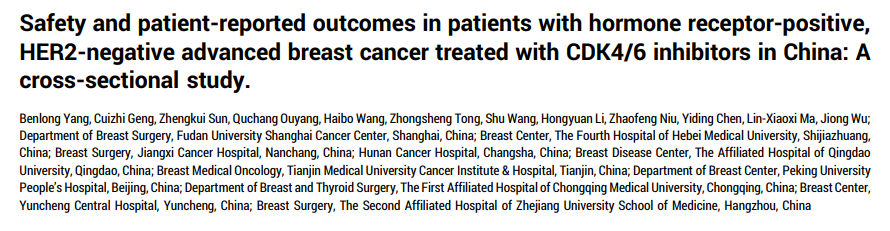 在近日举行的2024年ASCO大会上,乳腺癌领域披露的PRO相关研究共计17项,其中包括由复旦大学附属肿瘤医院吴炅院长为Leading PI的《CDK4/6抑制剂治疗HR阳性晚期乳腺癌安全性和患者报告结局(PRO)横断面研究》(摘要号:1054)发表。这项研究是当前国内最大样本量接受CDK4/6抑制剂治疗的患者报告结局,为临床实践提供具有真实价值的参考依据。