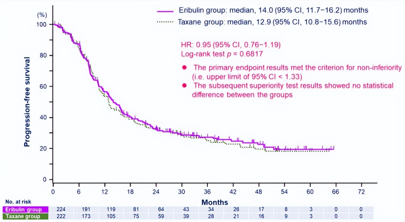 本研究首次证明HER2双重阻断联合应用时,艾立布林不劣于紫杉类药物。艾立布林联合HP可作为局部晚期或转移性HER2+BC的一线治疗,其毒性较小,但与含紫杉类药物的方案同样有效。