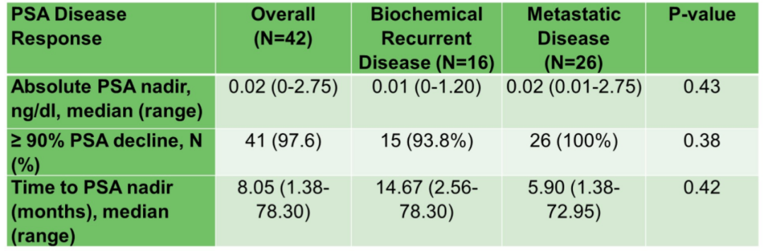 临床中,ADT可导致一些雄激素剥夺相关的不良事件,但仍是前列腺癌内分泌治疗的基础。那么,是否有其他潜在的ADT替代方案?5-α还原酶抑制剂(5-ARI)能够抑制睾酮转化为二氢睾酮,并且可能与恩扎卢胺产生协同作用。本次ASCO大会报道的一项2期研究,旨在探讨5-ARI能否替代ADT,联合恩扎卢胺用于治疗去势敏感性前列腺癌(CSPC),以减少老年患者使用ADT的不良事件风险。该研究入组了42例转移或非转移CSPC老年(≥65岁)患者(BCR 16例,mCSPC 26例),有23例患者完成了恩扎卢胺+非那雄胺治疗。中位随访5.9年,PSA-PFS仍未达到(NR),中位至PSA最低值时间为8.1个月,中位PSA最低值为0.2 ng/mL,98%的患者达到PSA下降≥90%(PSA90)。最常见的不良事件是疲劳(88%)、男性乳腺发育(72%)、热潮红(42%)、高血压(40%)和跌倒(37%);停药率为21%,减药率为30.2%。